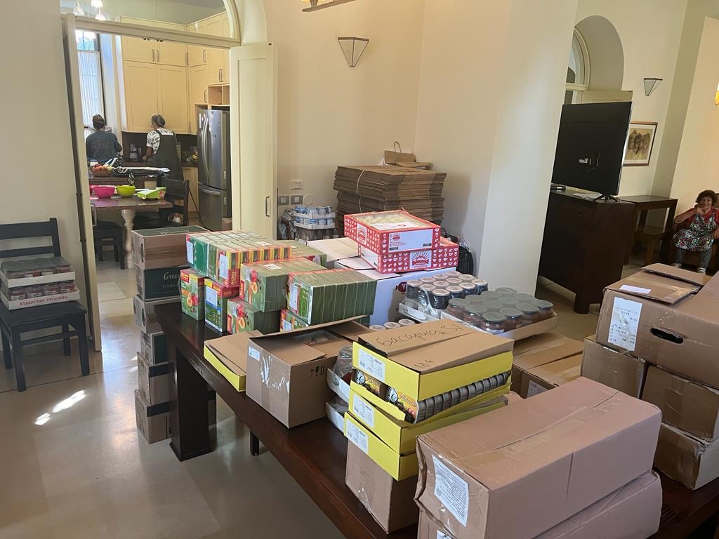 Sixteen people continue to live in our Jerusalem Center, five families from Ashkelon. We constantly communicate with them, pray, and discuss biblical topics. They help us a lot: together, we prepare hot food for distribution, grocery bags, and much more. Yesterday, I gave them a tour of Jerusalem. It was a perfect time. We went to eat ice cream, and one religious woman, learning that they were from Ashkelon, offered to help. It turned out that she lives not far from the center, and in the evening, she brought toys and a lot of different treats. Naturally, she asked whose house it was, and we had the opportunity to share the Good News with her!