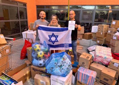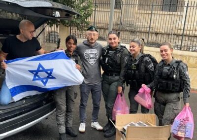 Am letzten Schabbat stellten wir spezielles Essen für die Soldaten an der libanesischen Grenze zur Verfügung. Sie erhielten Challa, Wein, Traubensaft, einige Süßigkeiten, Burkas und mehr. Außerdem haben wir sie mit Insektenschutzmittel versorgt. Heute haben wir den Soldaten der Spezialeinheiten im Gaza-Vorstand und an die Luftwaffe Geschenke geliefert. Das Geschenk beinhaltet Thermokleidung, Powerbanks, Taschenlampen…