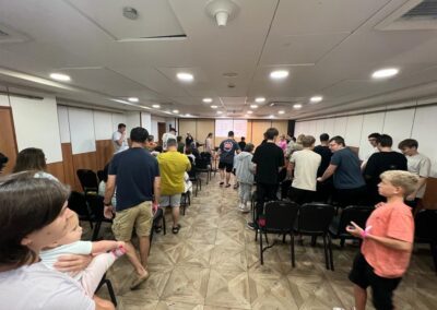 Nach viel Gebet entdeckten wir eine neue Möglichkeit, eine fünftägige Kreuzfahrt von Israel nach Griechenland für eine Gruppe von 52 Holocaust-Überlebenden zu organisieren und durchzuführen. Diese Reise bot ihnen die Möglichkeit, einige Tage fernab der ständigen Bedrohung durch Fliegeralarm zu verbringen, schöne Ausflüge zu unternehmen und die Gemeinschaft untereinander zu genießen. Jeden Tag trafen wir uns in einem Raum, um Erfahrungen auszutauschen, Geschichten aus der Bibel zu lesen und gemeinsam zu beten.