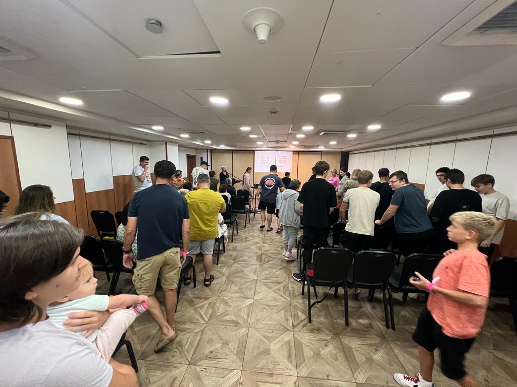 Wir haben gestern das Hotel am Toten Meer verlassen. Es war eine tolle Zeit mit 62 Leuten aus Ashkelon. Es waren Familien mit Kindern und es war so ein Segen zu sehen, wie glücklich sie waren, weg von den Sirenen zu sein und zu Luftschutzbunkern zu rennen. Es gab Gläubige und Ungläubige in der Gruppe, und unsere Mitarbeiter haben Beziehungen zu den meisten von ihnen. Einige der Leute aus der Gruppe kamen durch unseren Dienst an Olim (neue Einwanderer) zum Glauben. Jeden Morgen und Abend trafen wir uns zur Anbetung (Luda hat einen wunderbaren Job gemacht), zum Gebet und zum Studium der Bibel. Ich habe darüber gesprochen, wie wir Gott in einer schwierigen Zeit vertrauen können. Wir hatten tolle Diskussionen und Zeit zusammen. Am Samstag lud ich einen Zauberer ein, der eine hervorragende Vorstellung für Kinder und Erwachsene gab. Alle waren dankbar, weg von dem schweren Raketenfeuer zu sein. Eine Rakete landete sogar in der Nähe des Hauses einer Familie!