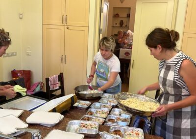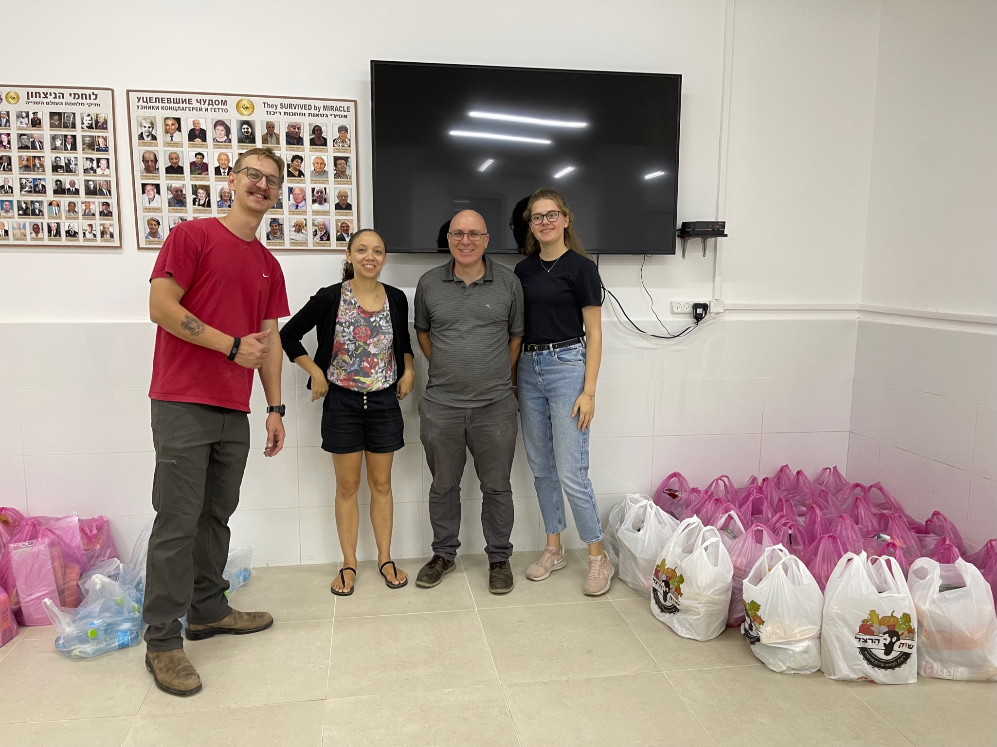 Heute planten wir, Lebensmittel zu kochen und in Paketen an 120 Holocaust-Überlebende aus Ofakim zu verteilen. Wir erhielten eine Anfrage von einer lokalen Gemeinde, 70 warme Mahlzeiten in Ashkelon für die Menschen in Tierheimen und für ältere Menschen bereitzustellen. Sie haben oft keine Zeit, zwischen dem Laufen zu den Luftschutzbunkern eine richtige Mahlzeit zu kochen. Zusätzlich zu den 120 Mahlzeiten, die wir geplant hatten, fügten wir weitere 70 Mahlzeiten hinzu, um sie in Ashkelon zu verteilen.