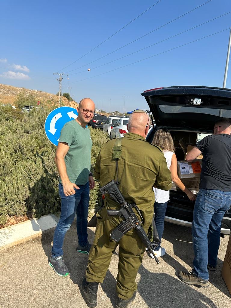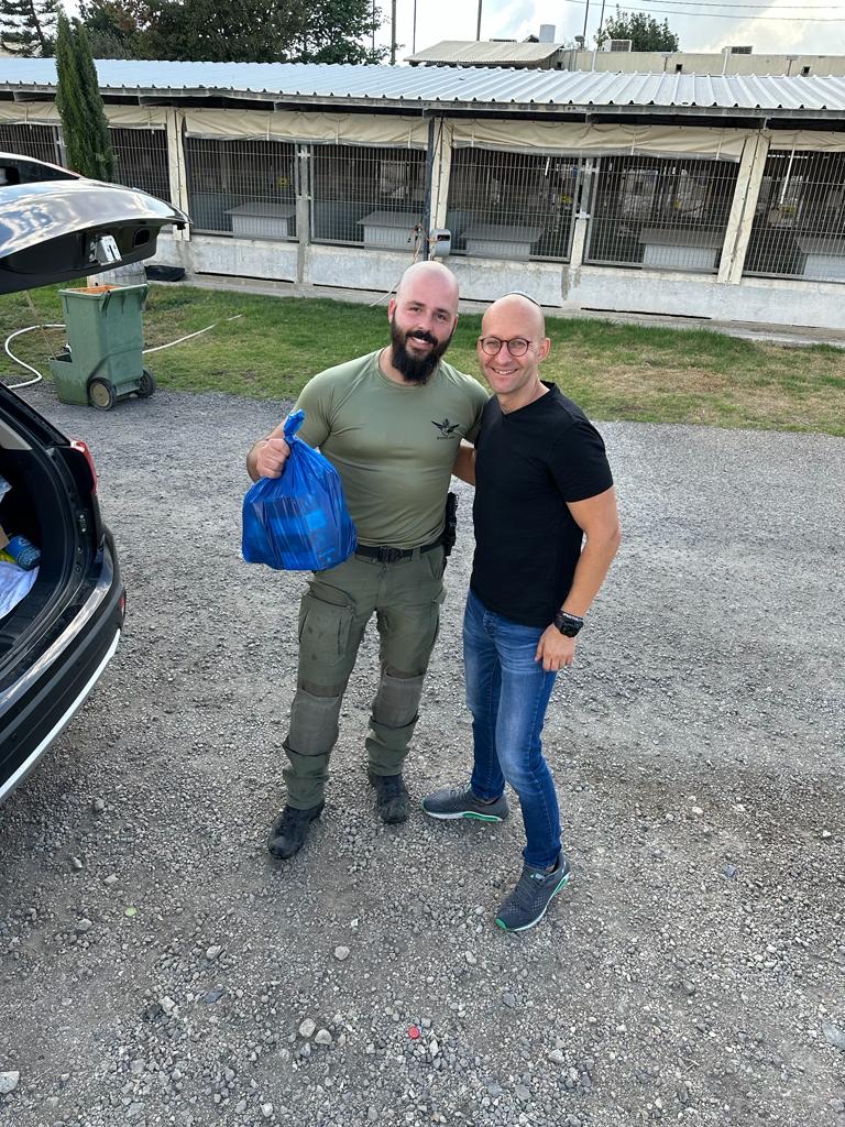 In the afternoon, Yaron, an officer from one of the IDF military units, arrived to pick up a box of socks and underwear for his soldiers. These items were what remained from last week’s supplies