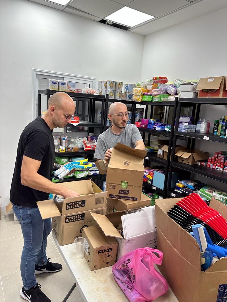 Our hands have not been idle. Jason, together with our ministry team ordered warm weather clothing for 200 people. We contacted our Ramat Gan Ministry Center community and they responded! A team of eight of us repackaged all of the supplies by size for each person. We would have had more people come to help us repackage everything, but the country’s supply lines are chaotic and we didn’t get much notice when the order was ready. Praise God, these supplies are already being delivered by our Tel Aviv and Jerusalem staff to the bases with believers on them, so they can share where and why the packages came from! If there are no changes, soon we will also distribute food to Holocaust Survivors in a suburb of Tel Aviv and our Mercaz community will come out to help with that as well. This week David and Jason went shopping for supplies to help displaced evacuees at a site where 2,500 people are temporarily relocated. David drove down there with a member of Chosen People Ministries Japan. They served in the logistic center for two days, stocked shelves and drove to a distant city to buy even more supplies.