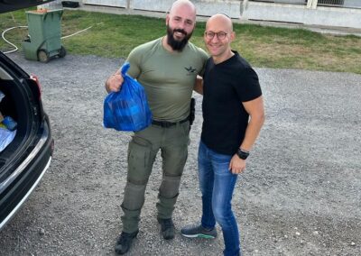 Als wir uns der Grenze näherten, wurde die Atmosphäre immer angespannter. Die Soldaten, viele von ihnen sehr jung, hatten ernste Gesichter. Wir sahen zahlreiche Panzer und Polizisten in Kampffahrzeugen. Als wir den vorgesehenen Ort erreichten, wurden wir mit einem Offizier verbunden. Soldaten aus den Stützpunkten kamen heraus, um die Gegenstände abzuholen. Sie waren sehr erfreut, und wir übermittelten, dass christliche Freunde Israels beten und den jüdischen Staat in dieser schwierigen Zeit segnen. Einige Soldaten erzählten von ihren Kindern und Ehefrauen in der Heimat. Die Reise war anstrengend, aber wir sind dankbar für die Möglichkeit, unserem Volk in dieser schwierigen Zeit zu dienen. Liebe Freunde, wir danken Ihnen für Ihre Liebe und Unterstützung.