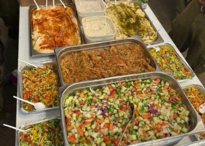 Da die Zahl der Teilnehmer an Bibelarbeiten und Brunch immer größer wird, ist es manchmal eine Herausforderung, mit dem Budget für ausreichend Verpflegung zu sorgen. Schon Jeschua wusste, dass ein hungriger und müder Körper nicht nur geistige, sondern auch körperliche Nahrung braucht. Das Essen ist die erste Gelegenheit für unsere Mitarbeiter, den Teilnehmern, die sich nach einem langen Arbeits- oder Studientag durch den Verkehr kämpfen, zu dienen, Gemeinschaft zu haben und gemeinsam aus Gottes Wort zu lernen. Das Essen fördert auch die Gemeinschaft und gottesdienstliche Tischgespräche, lange bevor man sich hinsetzt, um gemeinsam die Heilige Schrift zu studieren oder Gebete zu sprechen und zu empfangen, wie kürzlich beim Frauenbrunch unseres Dienstes, als eine chinesisch-israelische Freundin erzählte, wie Jeschua sich ihr in ihrem abgelegenen Dorf in einem Traum offenbarte und sie und ihre muslimische Familie zum Glauben führte. Kurz darauf erzählte eine junge israelische Jüdin, wie auch sie durch einen Traum gerettet wurde, und eine ältere israelische Jüdin, die seit über vierzig Jahren gläubig ist, berichtete, wie sie als Teenager gerettet wurde. Es war bewegend und gottesfürchtig, die Zeugnisse der beiden zu hören, während sie sich um die Tische versammelten.