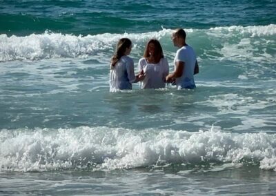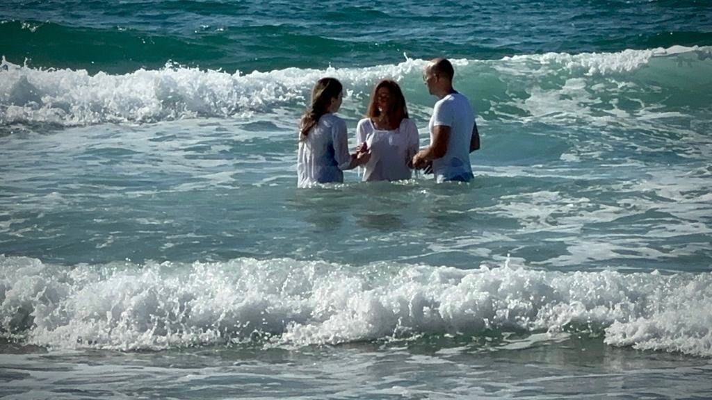Heute Morgen hat unser Partner Chosen People Ministries Japan in Zusammenarbeit mit CPM Israel zehn Waschmaschinen und zehn Trockner für Israelis gekauft, die aus ihren Häusern in der Nähe von Gaza, der Frontlinie, evakuiert wurden. Diese Maschinen werden an den Kibbutz Sapir geschickt, wo ein großer Bedarf besteht. In meinem Bericht über den 8. Tag des Krieges erwähnte ich, dass Victoria in diesen für unser Volk schwierigen Tagen eine junge Frau in die Jüngerschaft führt und dass wir trotz der ständigen Raketenangriffe eine Wassertaufe für sie geplant hatten. Heute haben wir es geschafft: Y** wurde im Mittelmeer getauft, und ihr Gesicht strahlte trotz der schwierigen Situation um sie herum vor Freude. Am Abend luden wir V***, die ich in meinem Update zum 13. Kriegstag erwähnte, zu uns nach Hause ein, um gemeinsam den Schabbat zu begrüßen. Wir haben auch einige unserer Nachbarn eingeladen. Es war eine wunderbare Zeit, in der wir ihnen dienen und von der Liebe unseres Herrn erzählen konnten – um sie geistlich zu stärken und ihnen die gute Nachricht mitzuteilen, die wir in Jeschua HaMaschiach haben.